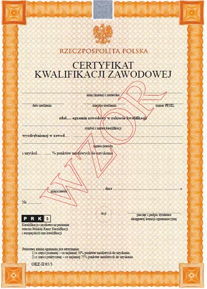 Dokument wydawany przez OKE po zdaniu egzaminu z danej kwalifikacji (ROL.03 lub ROL.09). Jest to oficjalne potwierdzenie Twoich umiejętności, ważne w całej Unii Europejskiej.